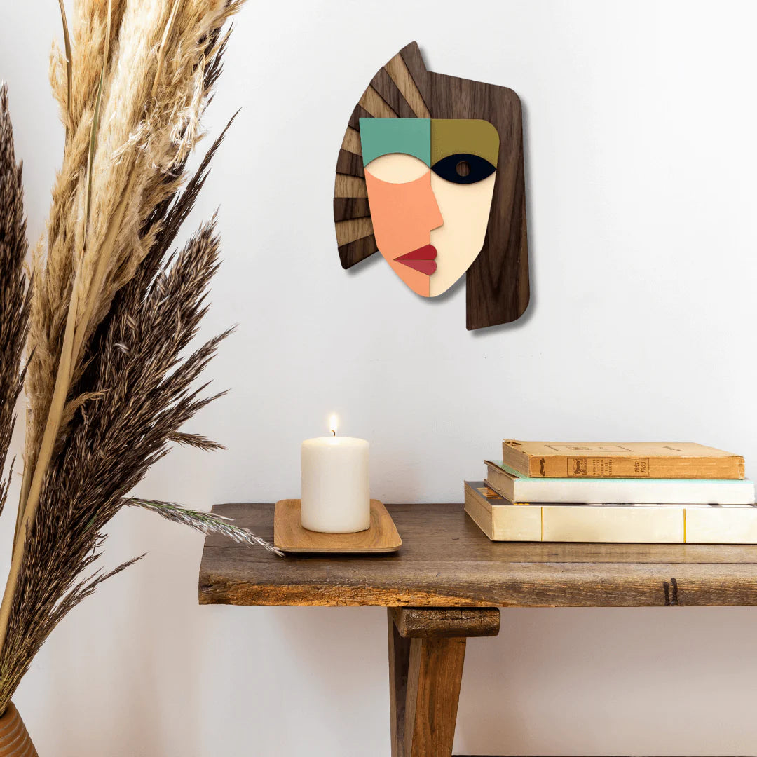 Hver maske er unik, og farverne kan variere, hvilket sikrer, at du får et helt særligt stykke kunst. Lad denne maske være et blikfang i dit hjem, hvor den naturlige skønhed i det håndmalede træ virkelig kommer til sin ret.