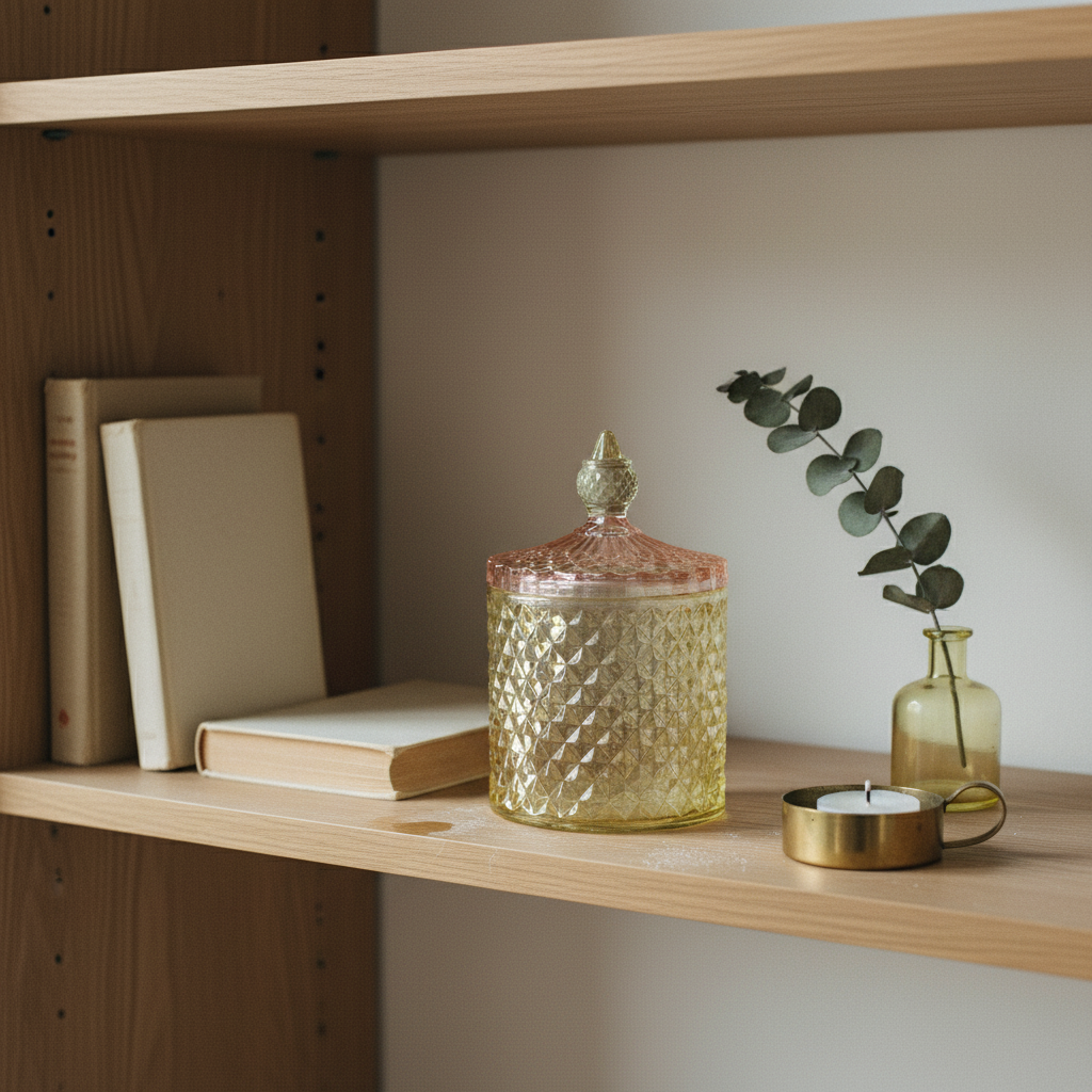 Med sin enkle form og diskrete farve passer denne bonbonniere ind i de fleste indretningsstile. Den kan bruges som et centralt element på et sofabord eller som en fin detalje på en reol eller kommode, hvor den både har en praktisk funktion og bidrager til hjemmets samlede udtryk.