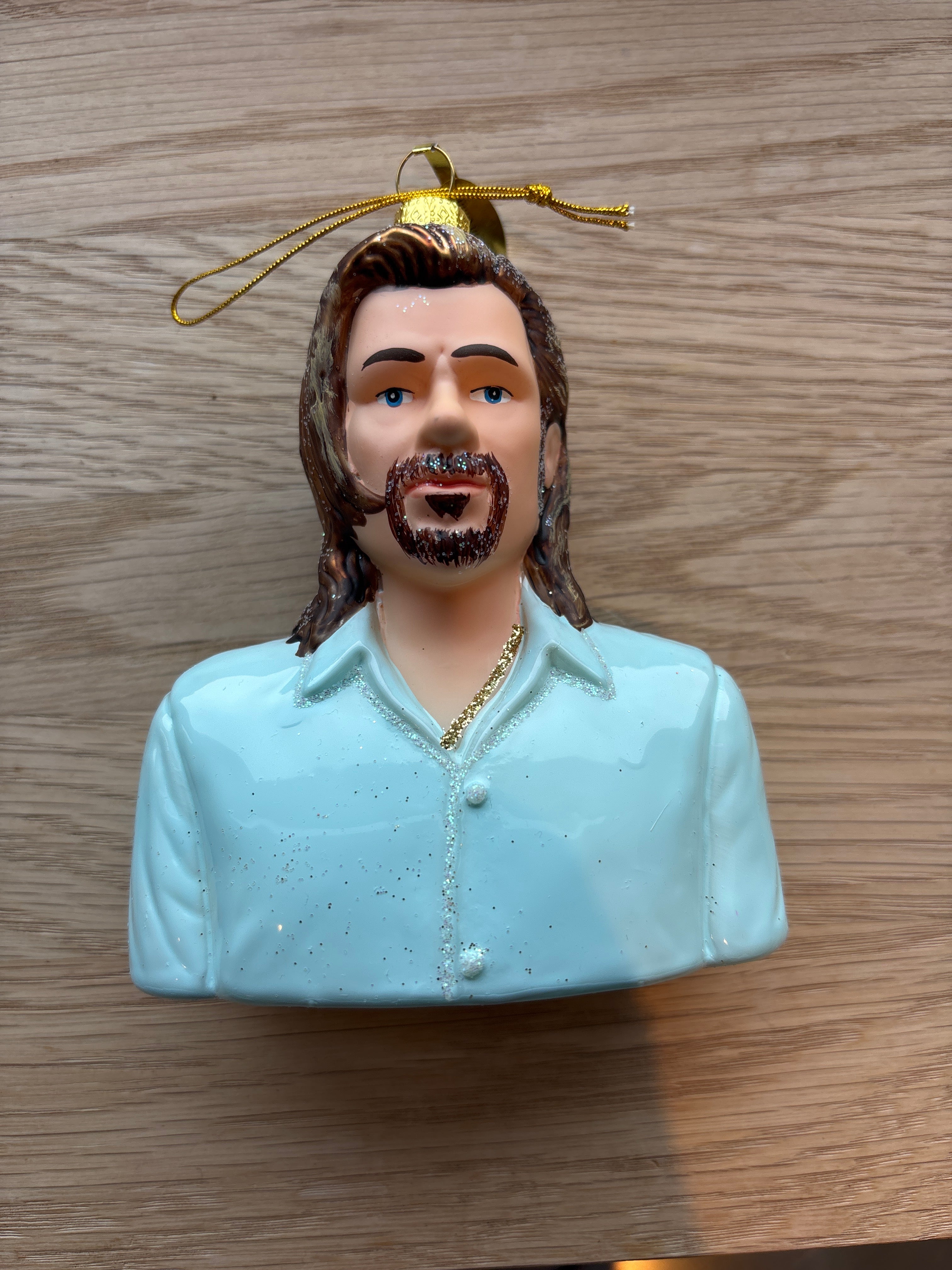 Fremstillet af Cody Foster, kendt for deres håndlavede ornamenter af høj kvalitet, er denne Brad Pitt figur lavet med omhu for detaljer. Den fungerer både som et samtaleemne blandt gæster og som et kunstnerisk indslag i din juleudsmykning.