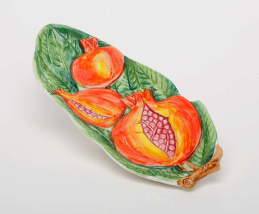 Få en smuk og praktisk løsning til dit køkken med granatæble fadet og skeholderen fra Caja Company. Dette håndmalede italienske fajance produkt tilføjer farve og charme til din madlavning.