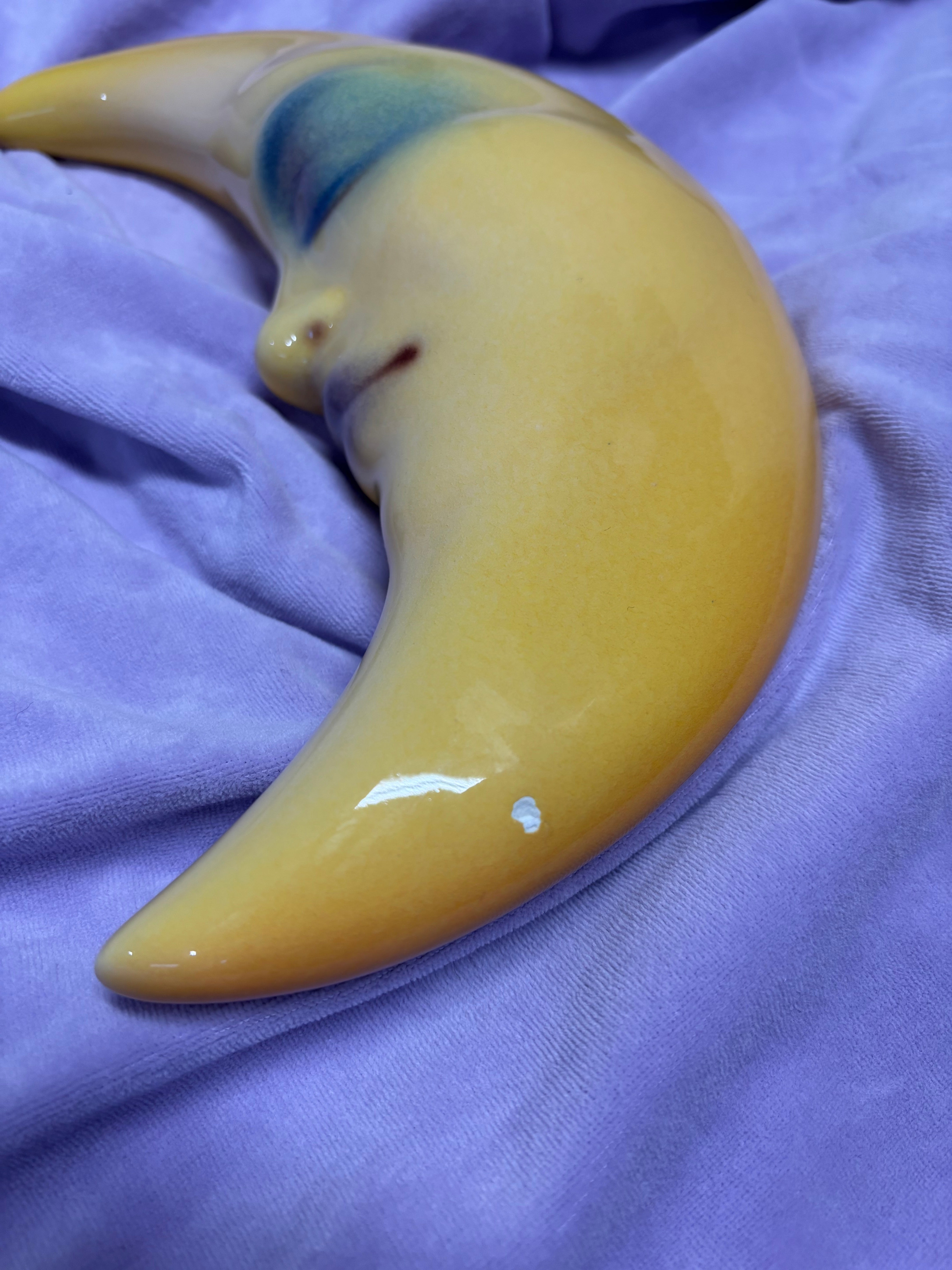 2. sortering - Gul måne vægophæng i keramik, mellem 27 cm