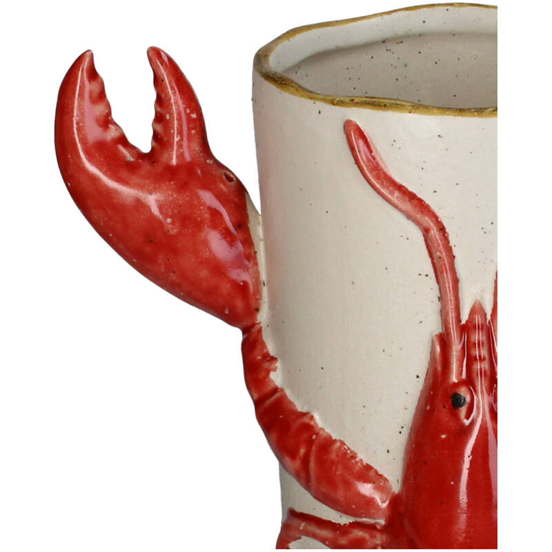 Giv dit hjem et maritimt præg med den unikke hummer vase fra Kersten. Denne keramiske vase i en livlig rød farve med en charmerende hummer, som tilføjer både karakter og farve til dit interiør. Den er ideel til blomster, men fungerer også som et dekorativt element, selv når den står tom.
