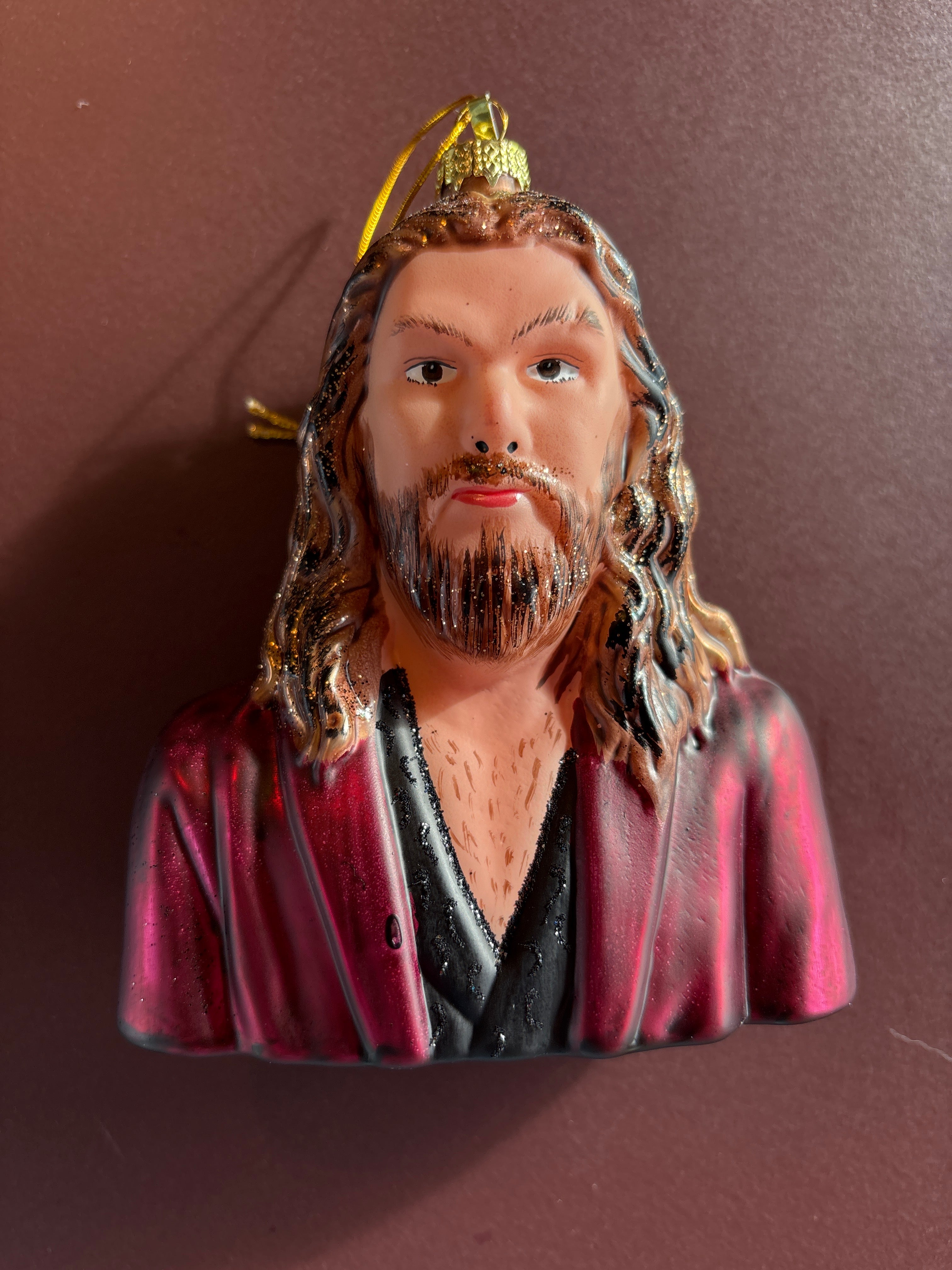 Gør juletræet personligt med dette håndmalede Jason Momoa ornament fra Cody Foster. Denne detaljerede glasfigur forestiller den karismatiske skuespiller kendt fra Game of Thrones og Aquaman, og er fremstillet i holdbart glas med omhyggelig håndmaling, der sikrer at hvert stykke er unikt.