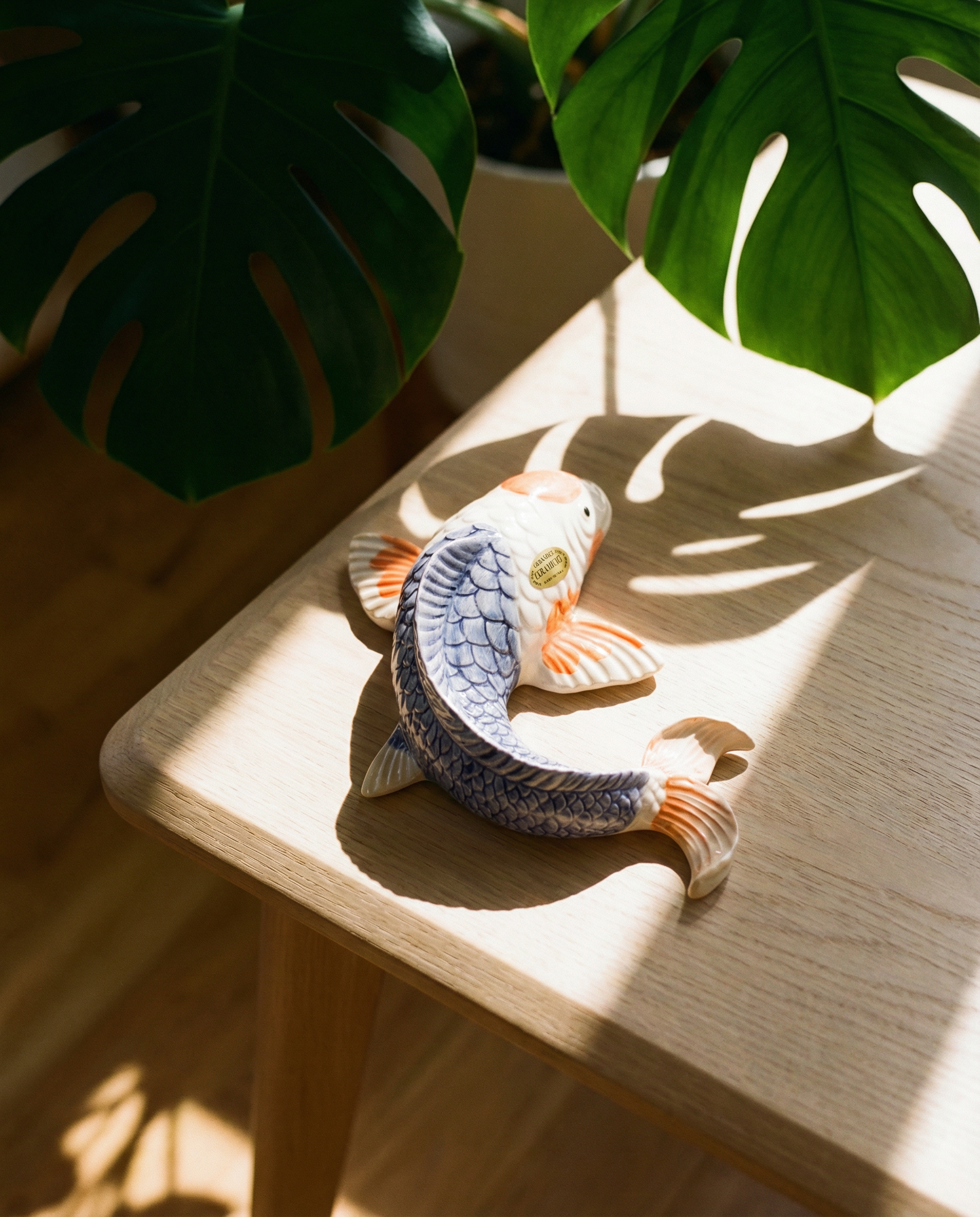 Denne lille karpefigur er et charmerende dekorativt element til hjemmet. Håndmalet i Italien med en karakteristisk blå, hvid og orange farvekombination, der giver hvert eksemplar et unikt præg. Karpen er designet med en alsidig funktionalitet, der gør den velegnet både som vægdekoration eller som fritstående pynteelement.
