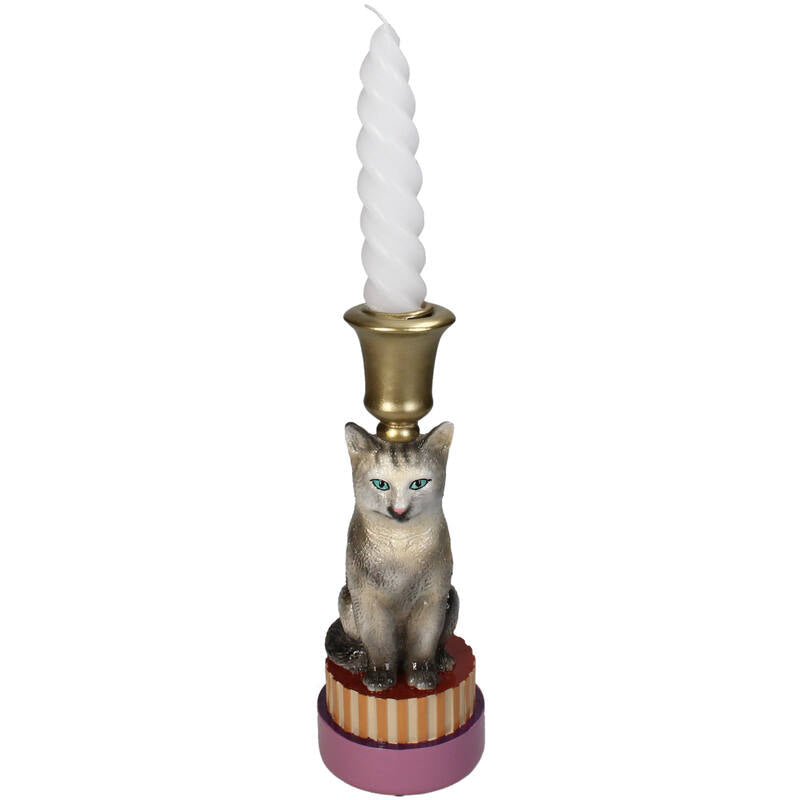 Denne farverige katte lysestage fra Kersten er både en praktisk lysholder og et dekorativt indretningselement. Fremstillet i holdbart polyresin kombinerer den funktionalitet med et sjovt, kattetematisk design, der passer perfekt ind i ethvert hjem med kærlighed til katte.