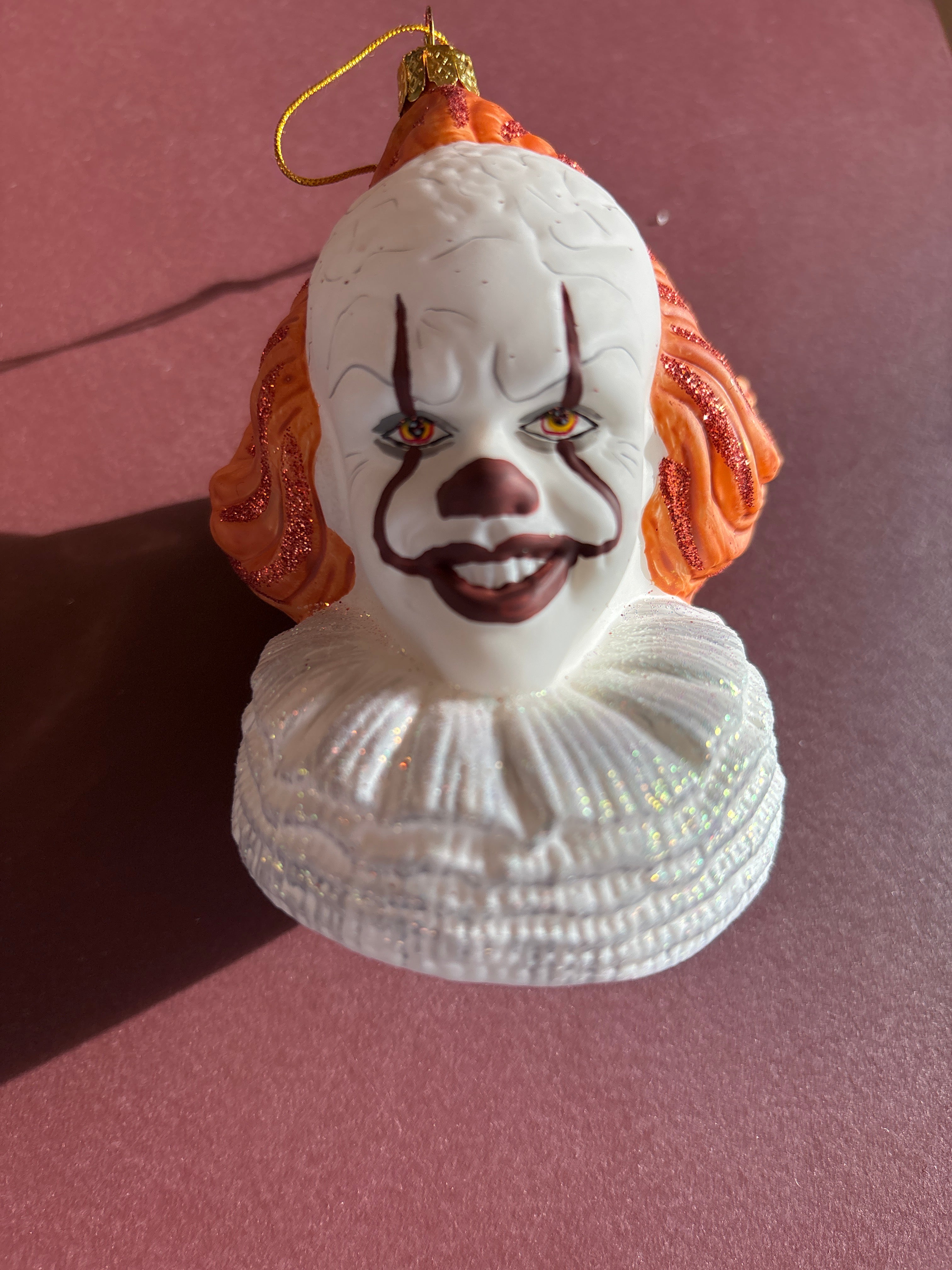 Dette håndlavede IT klovn ornament fra Cody Foster tilfører et element af uhygge til din juledekoration. Fremstillet i glas og omhyggeligt håndmalet sikrer dette ornament, at din julepynt skiller sig ud fra mængden med et alternativt og filmisk tema.