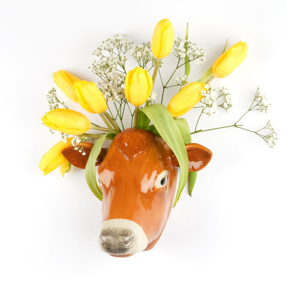 Denne charmerende ko vægvase i håndmalet stentøj tilfører et legende element til din indretning. Med sine 17 cm i højden fungerer vasen som et dekorativt indslag på væggen, der både er funktionel og giver et smil på læben. Den finurlige ko-figur fra Quail er fremstillet i kvalitetsstentøj med omhyggelige detaljer.