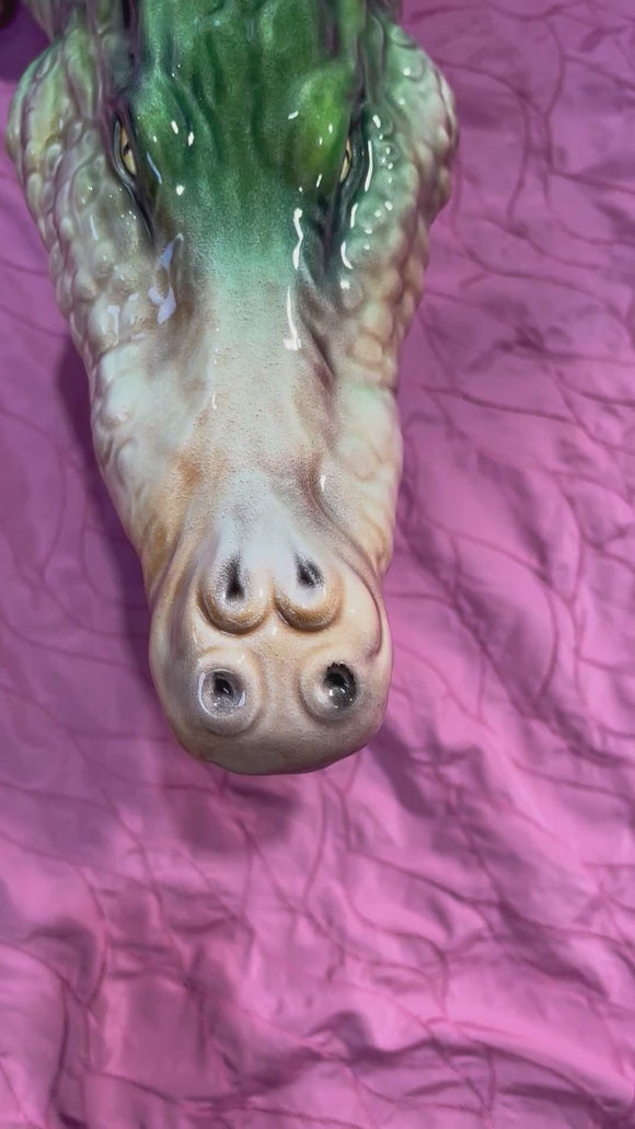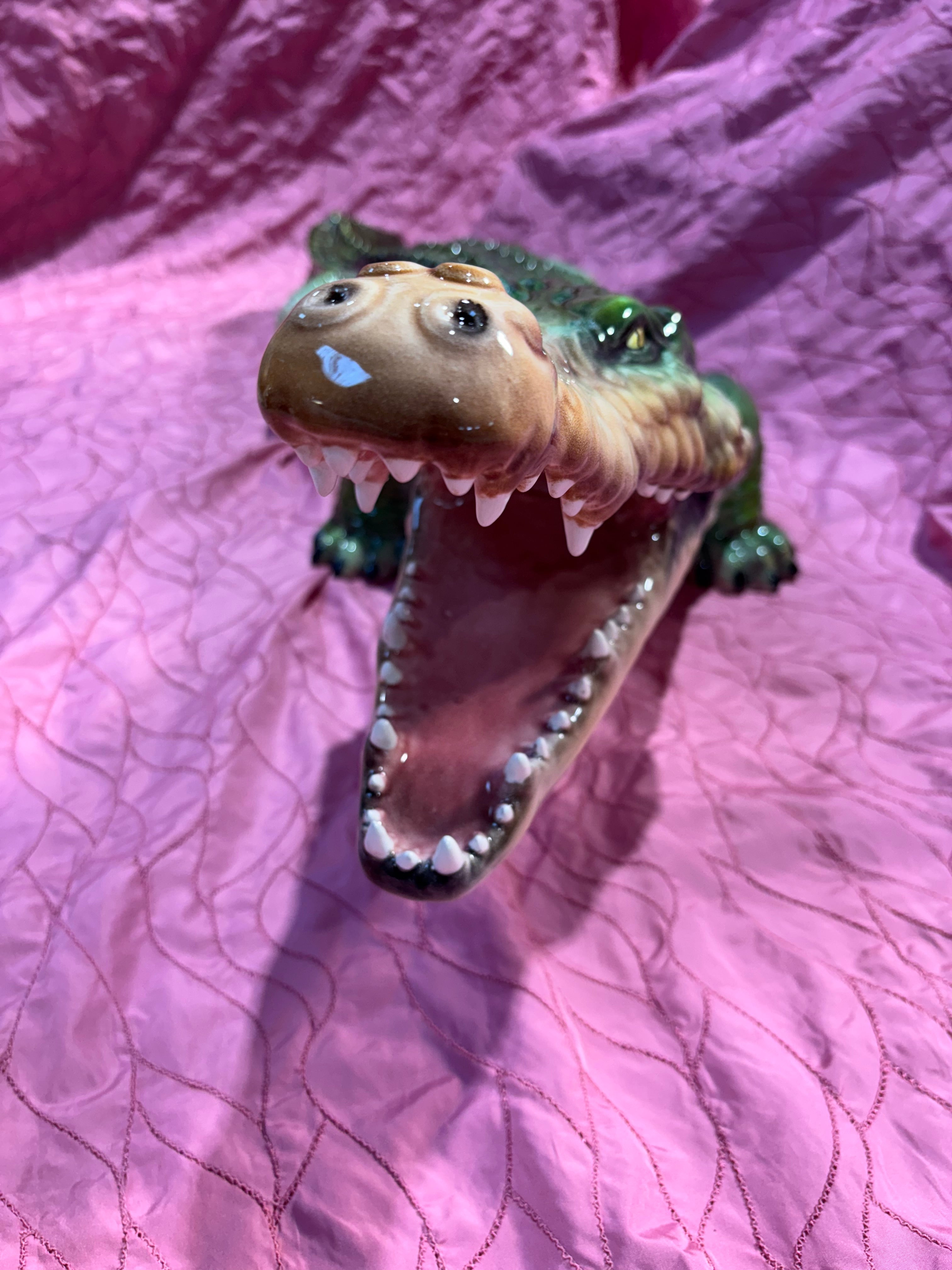 Håndmalet porcelænsfigur i vildt krokodillemotiv