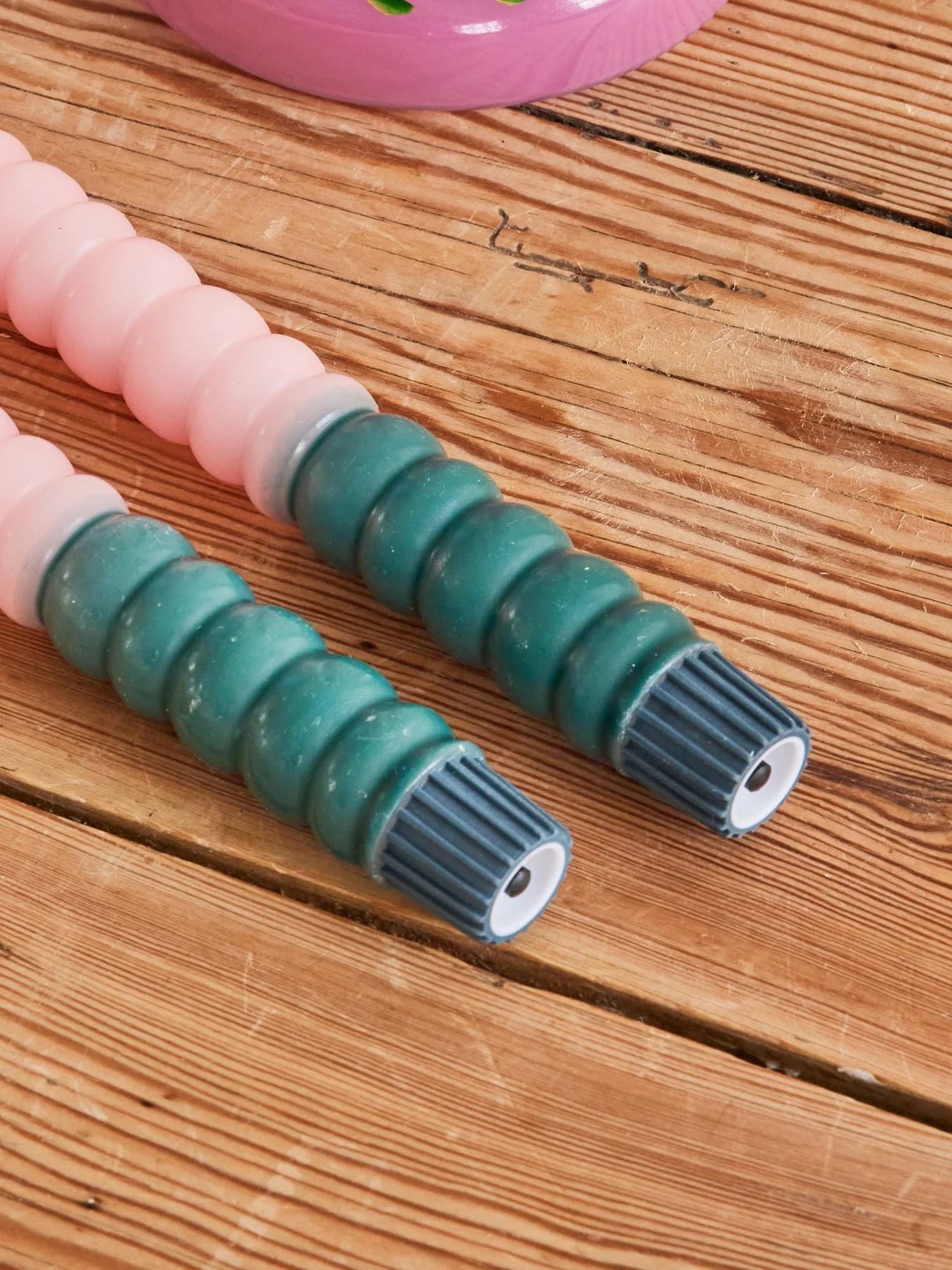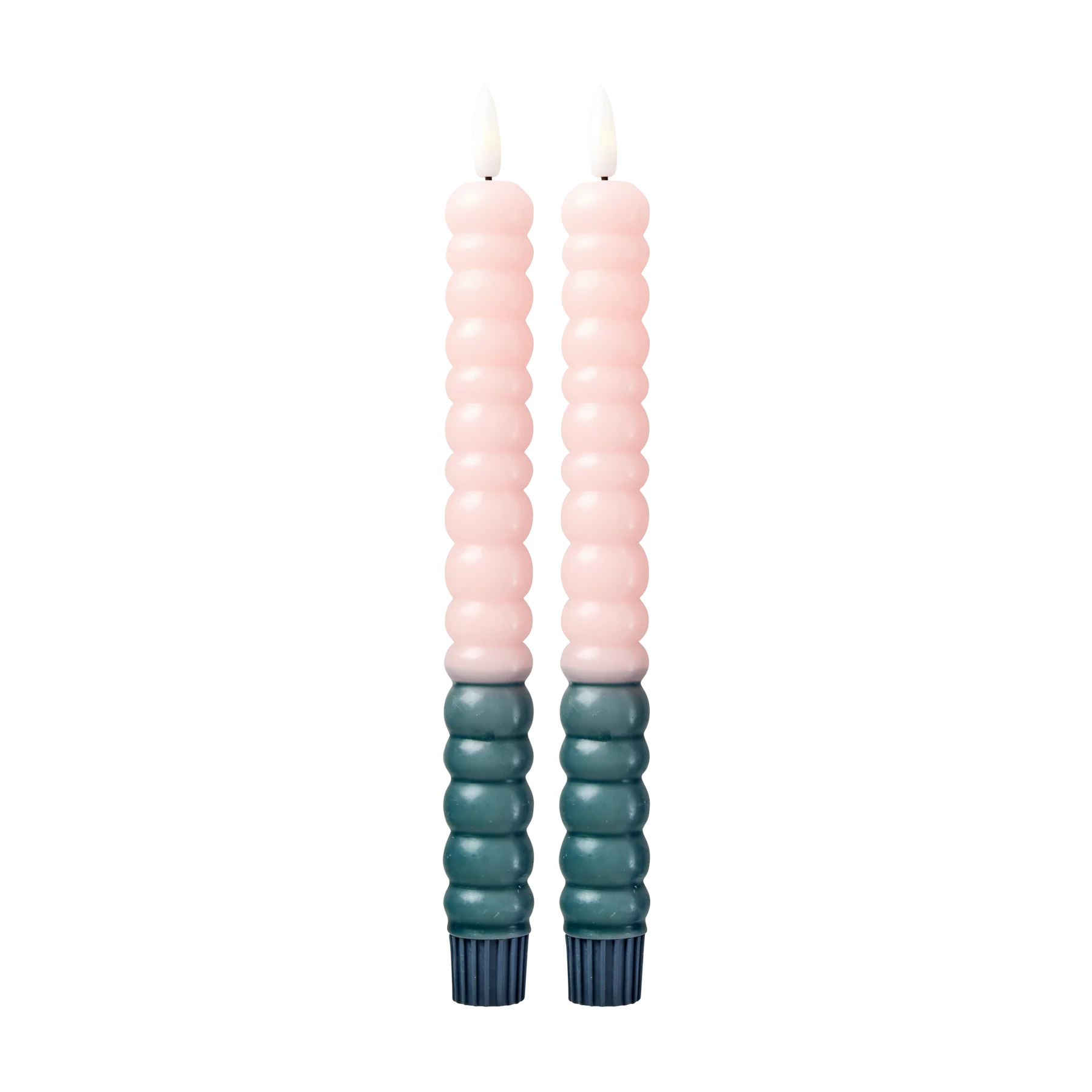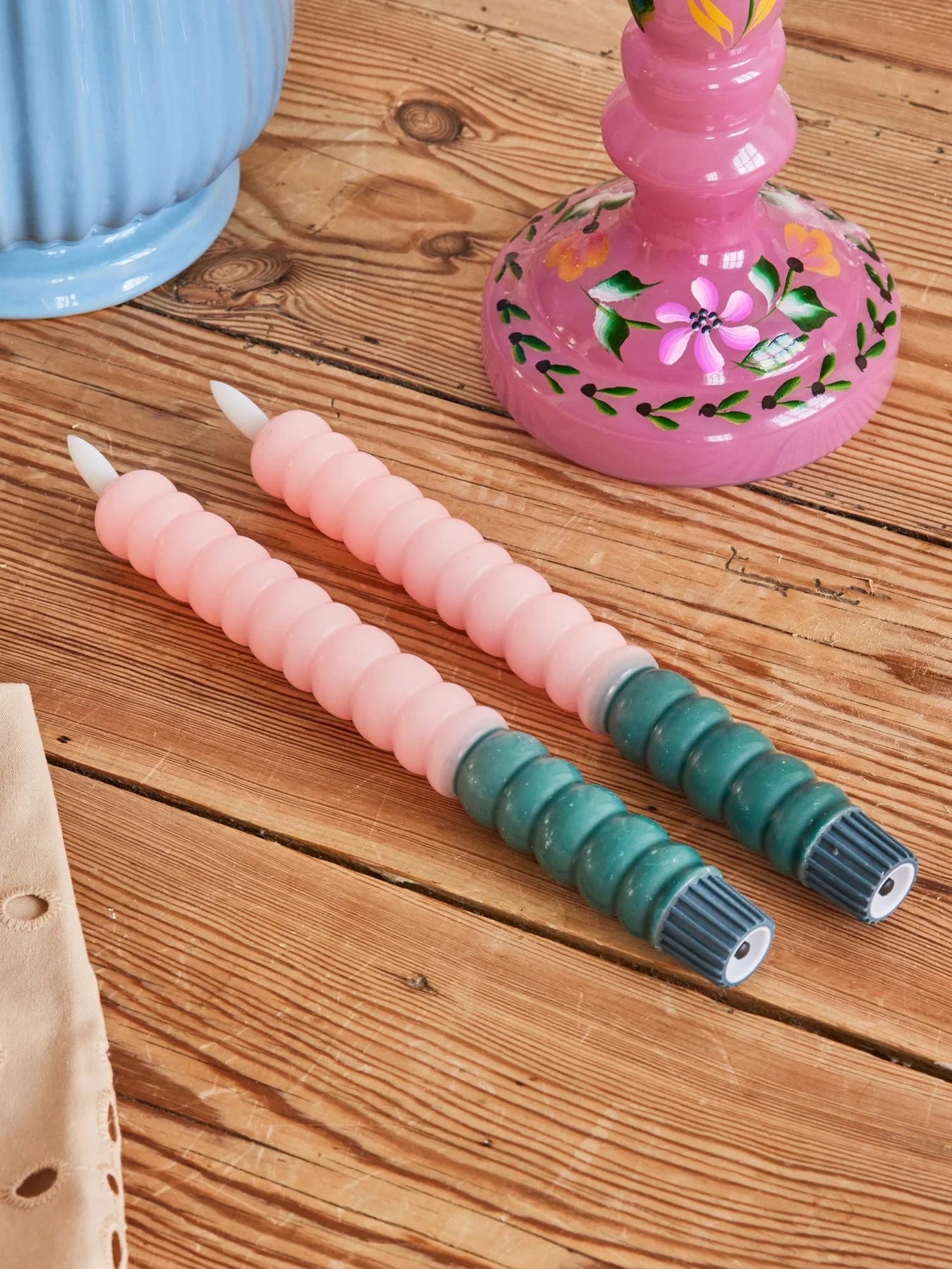 LED Stearinlys - Lyserød/grøn - 2-pak