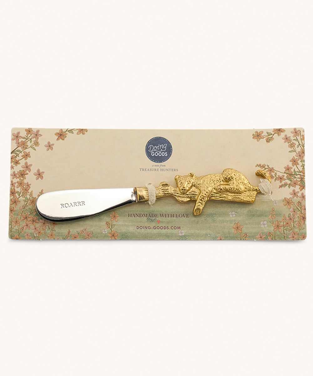 Tilføj et strejf af charme til dit serverings- og krydderiplade med denne smukke leopard smørekniv. Hver kniv er håndlavet i Indien, hvilket betyder, at du kan forvente en let variation i udseendet af hver enkelt kniv. Dette gør dem ikke kun unikke, men også en del af en historie om håndværk.