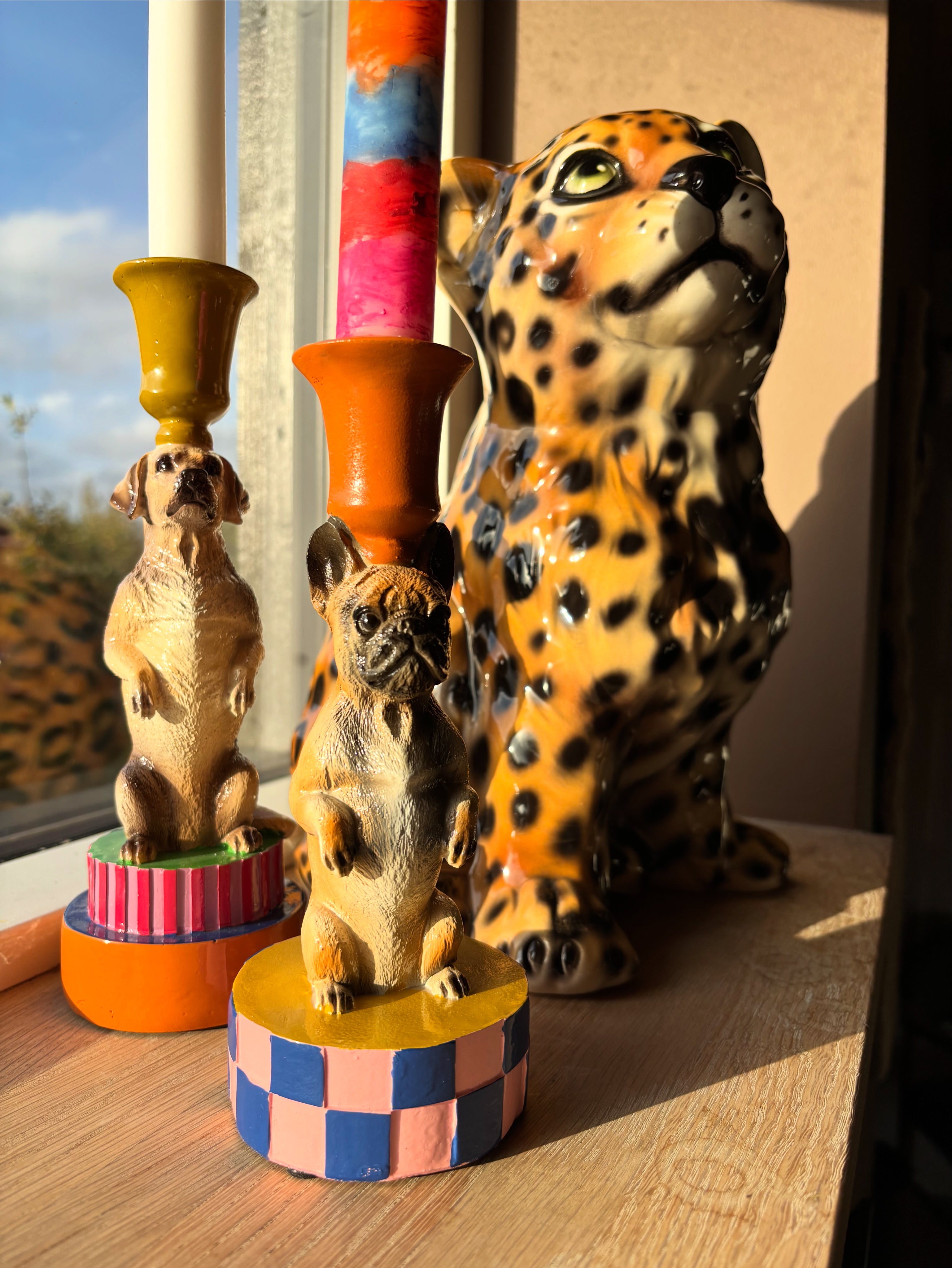 Denne porcelænsfigur er direkte importeret fra Sicilien og repræsenterer et traditionsrigt håndværk, der er videreført gennem generationer. De orange og brunlige nuancer i pelsen komplimenteres smukt af de grønne, udtryksfulde øjne, hvilket gør figuren til et karakterfuldt indretningselement, der fungerer særligt godt sammen med grønne planter.