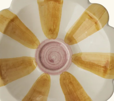 Disse fine, små keramikskåle med blomsterinspireret design og dekorative striber er individuelt håndmalet i Portugal. Hver skål har en diameter på 12,5 cm og en højde på 3 cm, hvilket gør den perfekt til servering af snacks, som dekorativt element eller til små hverdagsformål i hjemmet.