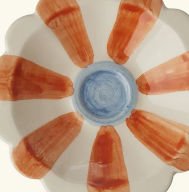 Oplev skønheden i disse fine, små skåle med et blomsterinspireret design og smukke striber. Hver skål er håndmalet i Portugal af en gruppe dygtige kvinder, hvilket gør hver enkelt skål unik med sine egne penselstræk. Denne skål tilføjer et charmerende touch til dit hjem og kan bruges til alt fra snacks til dekoration.