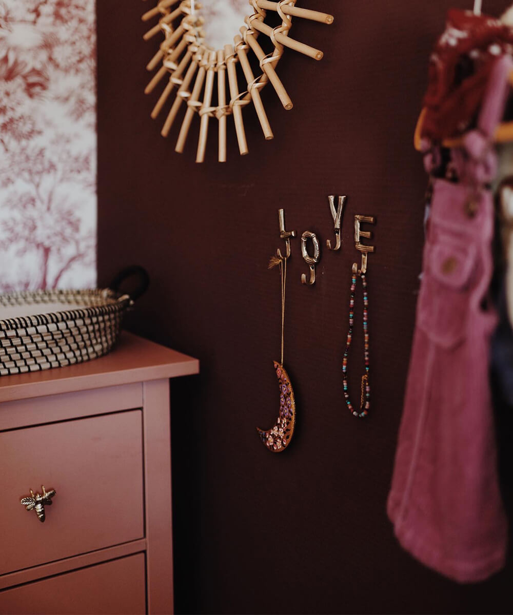 Med fire separate bogstaver får hver familiemedlem sin egen dedikerede plads til overtøj, tasker eller nøgler. Dette minimerer rod og gør det nemt at finde sine ting i en travl hverdag. Samtidig fungerer knagesættet som et dekorativt element, der tilfører karakter og varme til rummet.