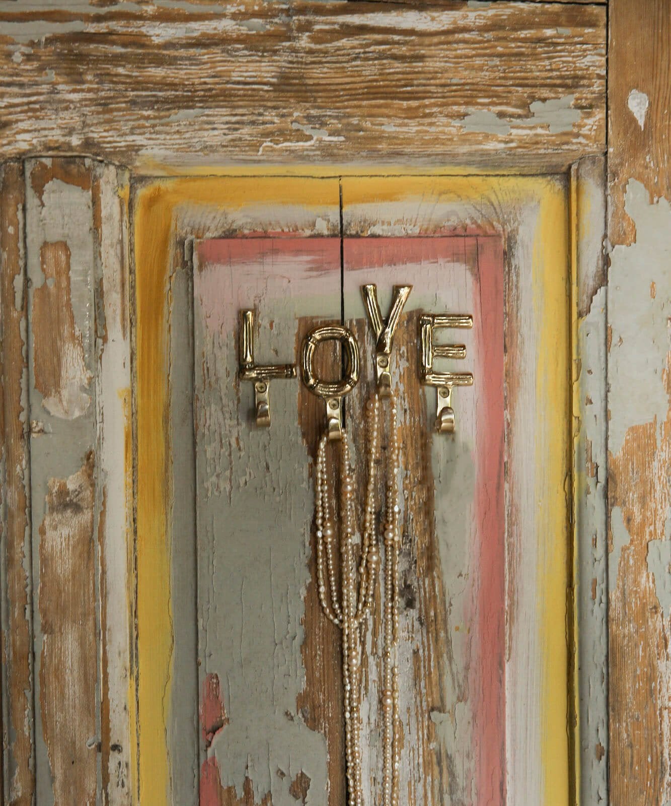 Knagesættet monteres individuelt med skruer (medfølger ikke). Du kan vælge at arrangere bogstaverne efter eget ønske - enten samlet som ordet "LOVE" eller fordelt på forskellige steder i hjemmet.