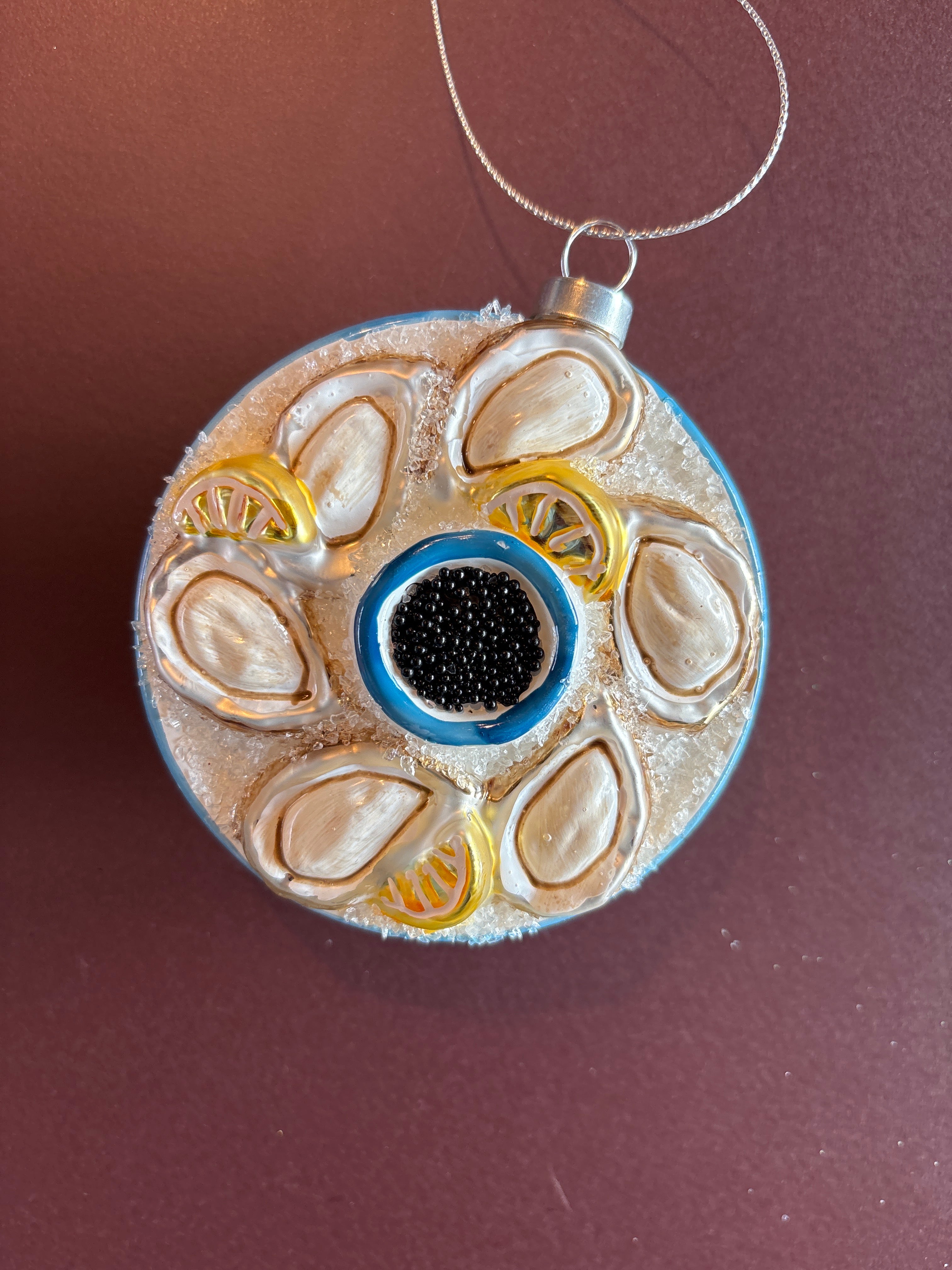 Dette smukke østers platte ornament fra Cody Foster er et håndmalet glasornament, der bringer et strejf af maritim elegance til juletræet. Med sine detaljerede former og omhyggelige håndværk bliver dette ornament hurtigt en øjenfanger i din juleudsmykning.