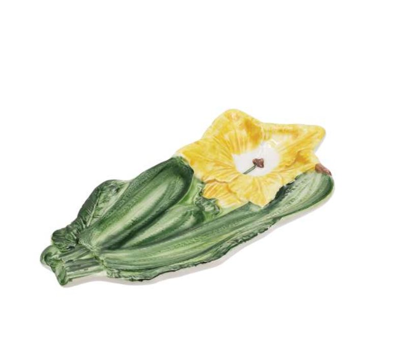 Denne skeholder har et smukt motiv af en zucchini og en zucchiniblomst.