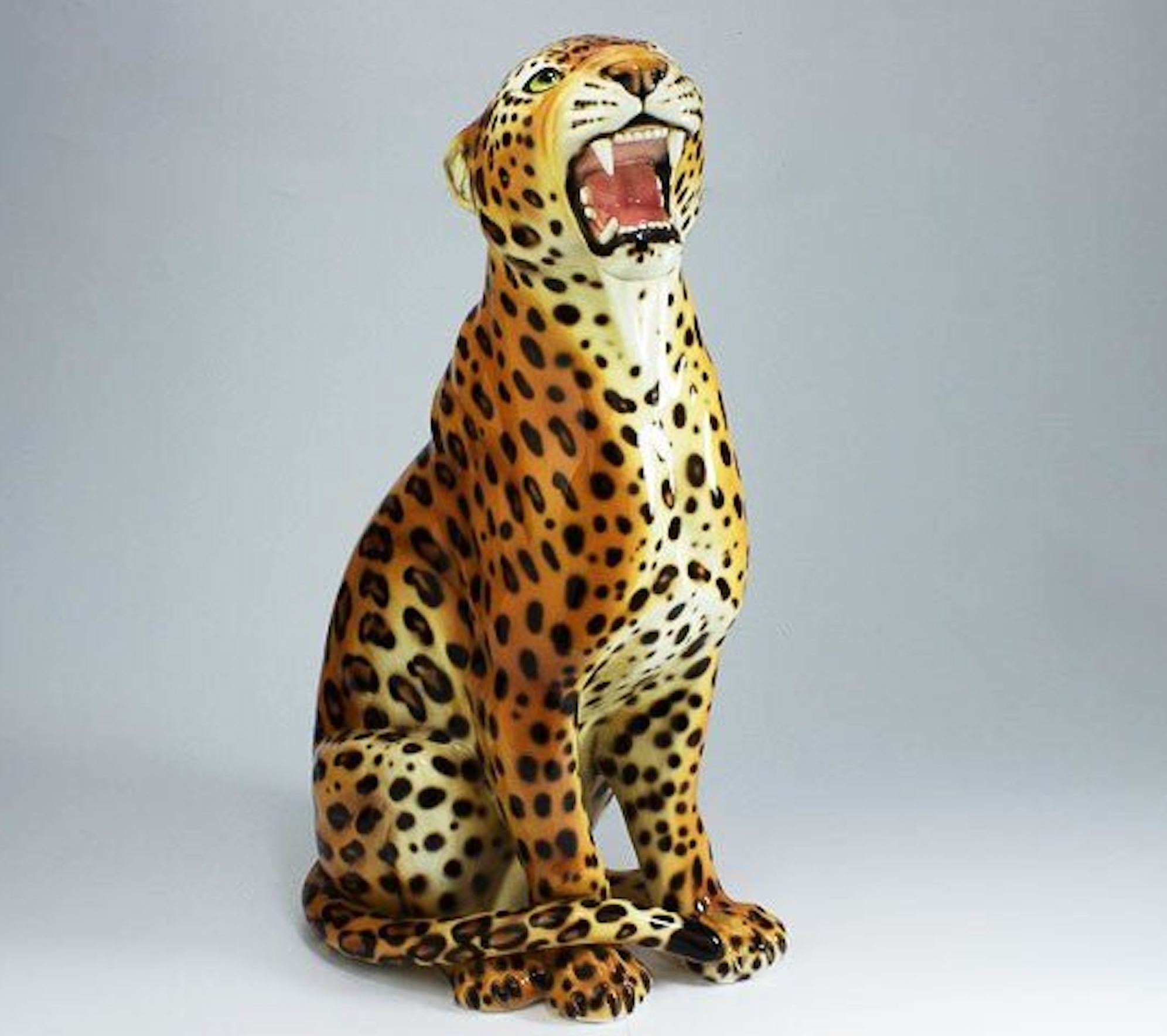 Håndmalet leopardfigur i italiensk porcelæn - et markant indretningselement