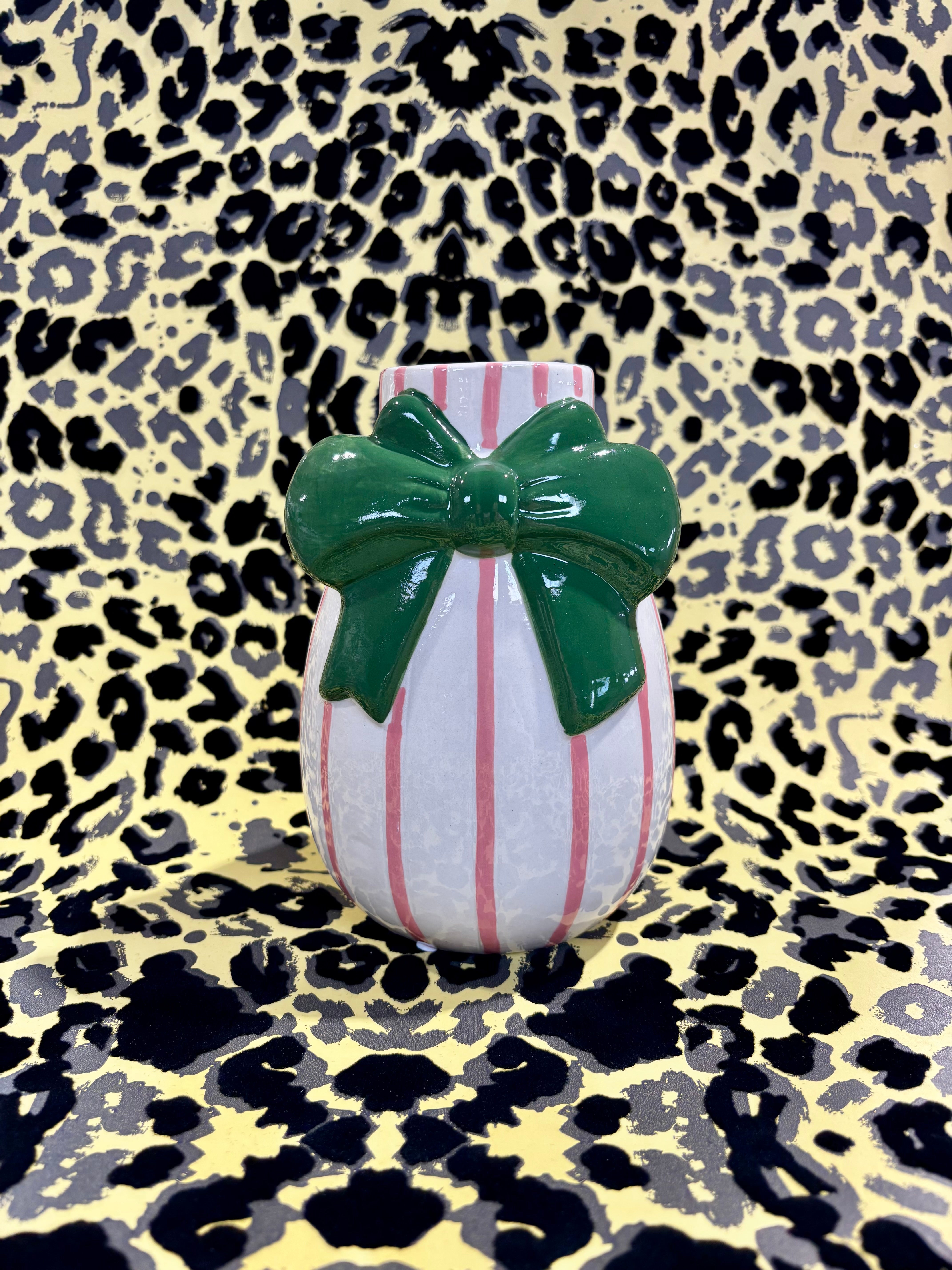 Tilføj et strejf af farve og sjov til dit hjem med denne farverige stribede vase. Den pink stribede vase med grøn sløjfe fra Kersten er perfekt til at skabe en elegant og legende atmosfære i ethvert rum.