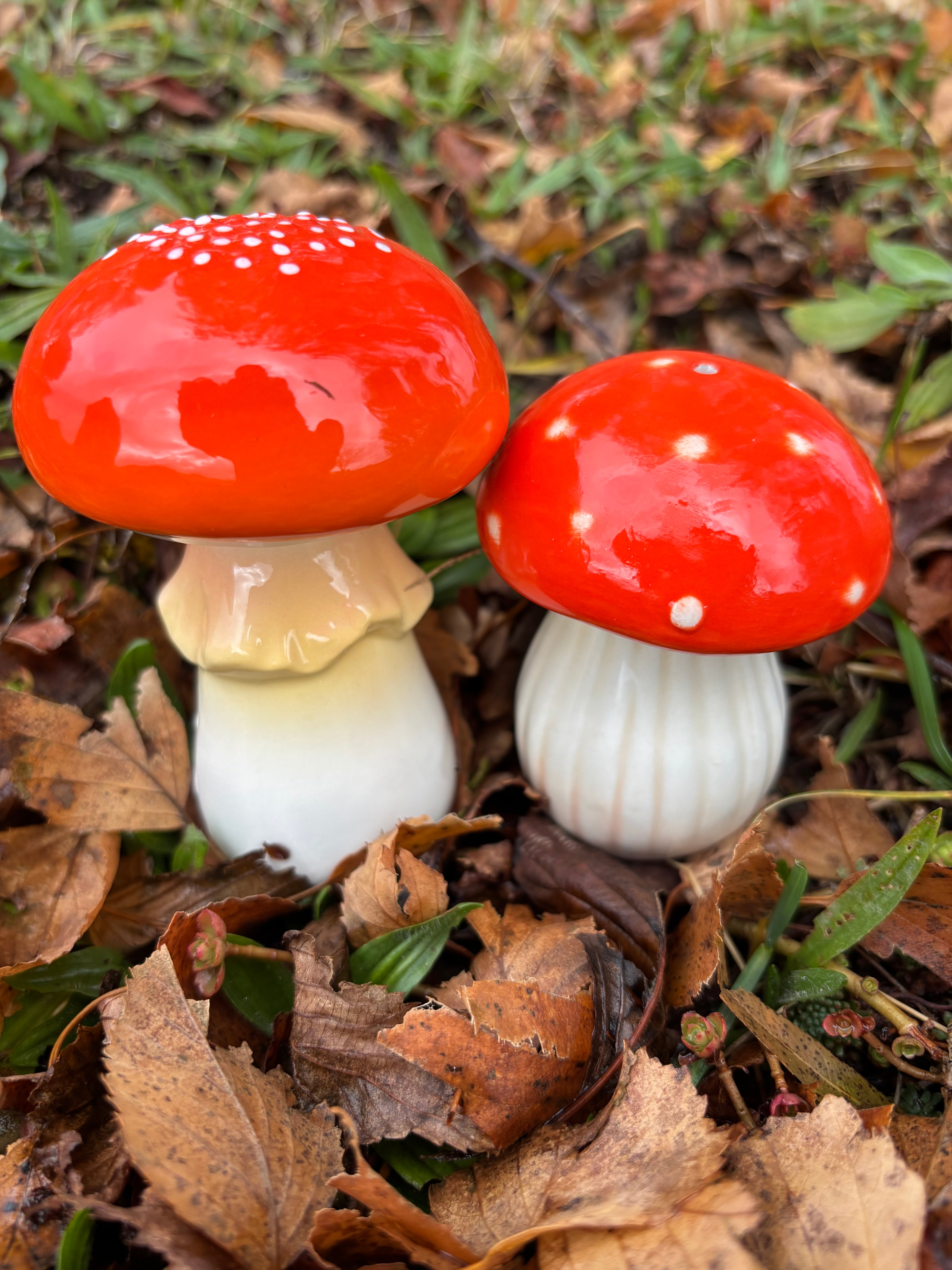 Med deres naturtro udseende bliver disse svampeformede salt- og peberbeholdere et samtaleemne ved bordet. Den større svamp måler 9,5x7 cm, mens den mindre er 8x6 cm, hvilket giver dem en god størrelse til at stå på bordet uden at optage for meget plads.