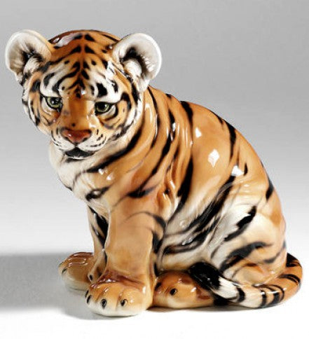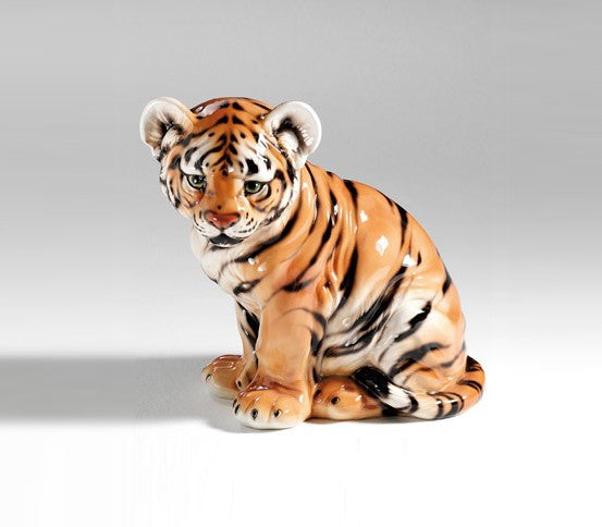 Håndmalet tiger unge i italiensk porcelæn til dit hjem